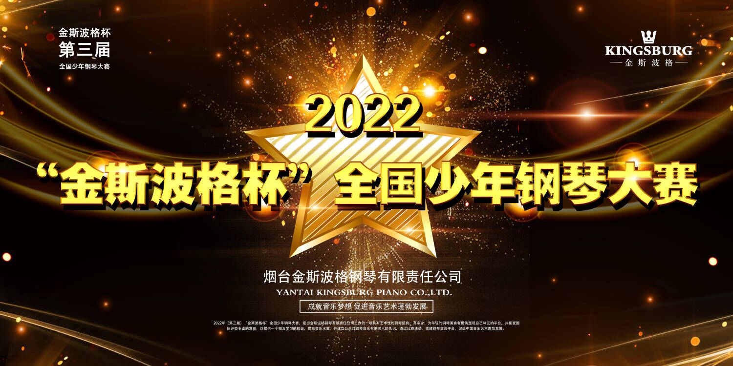 2022-03-02活动介绍2022 / 2022年(第三届)“金斯波格杯”全国少年钢琴大赛,由烟台金斯波格钢琴有限责任公司主办的一项具有艺术性的钢琴盛典。其宗旨:为年轻的钢琴演奏者提供显现自己琴
